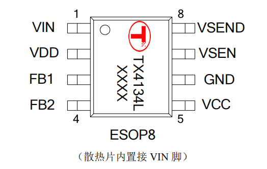 TX4134L 采用 ESOP8 封装,,,散热片内置接 VIN 脚。。。