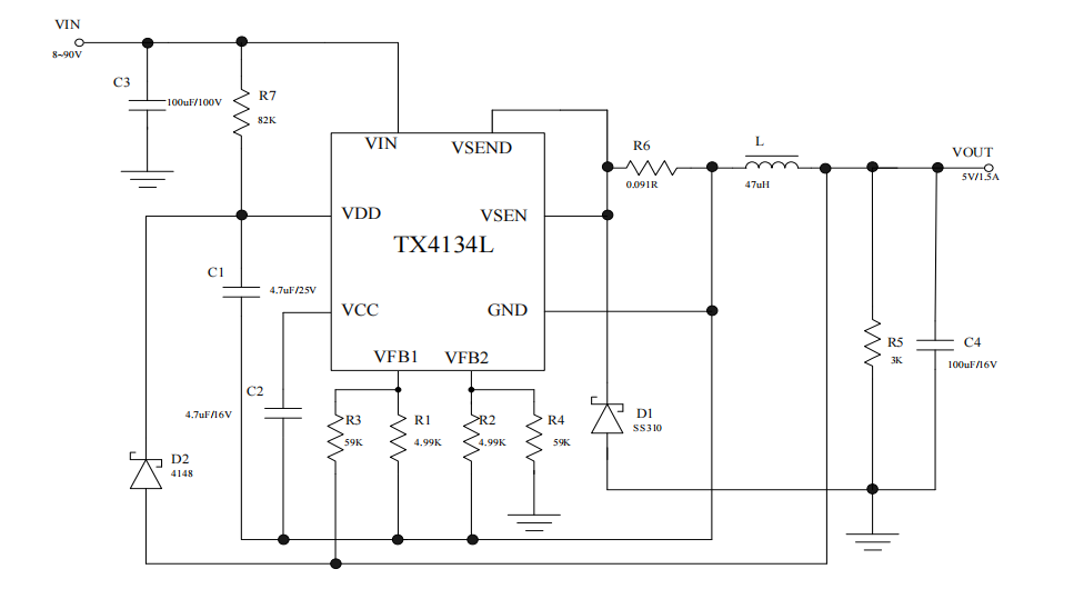 TX4134L具有低待机功耗、、高效率、、低纹波、、优异的母线电压调整率和负载调整率等特性。。。。