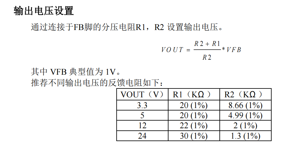 TX41390 通过设置FB引脚的分压电阻可设置输出恒压值。。。。